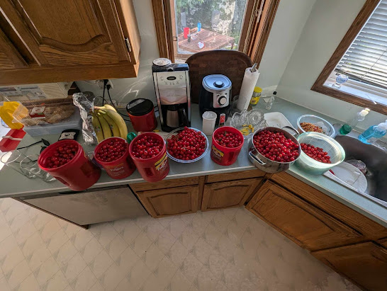 Cherries , picked then cleaned and washed.